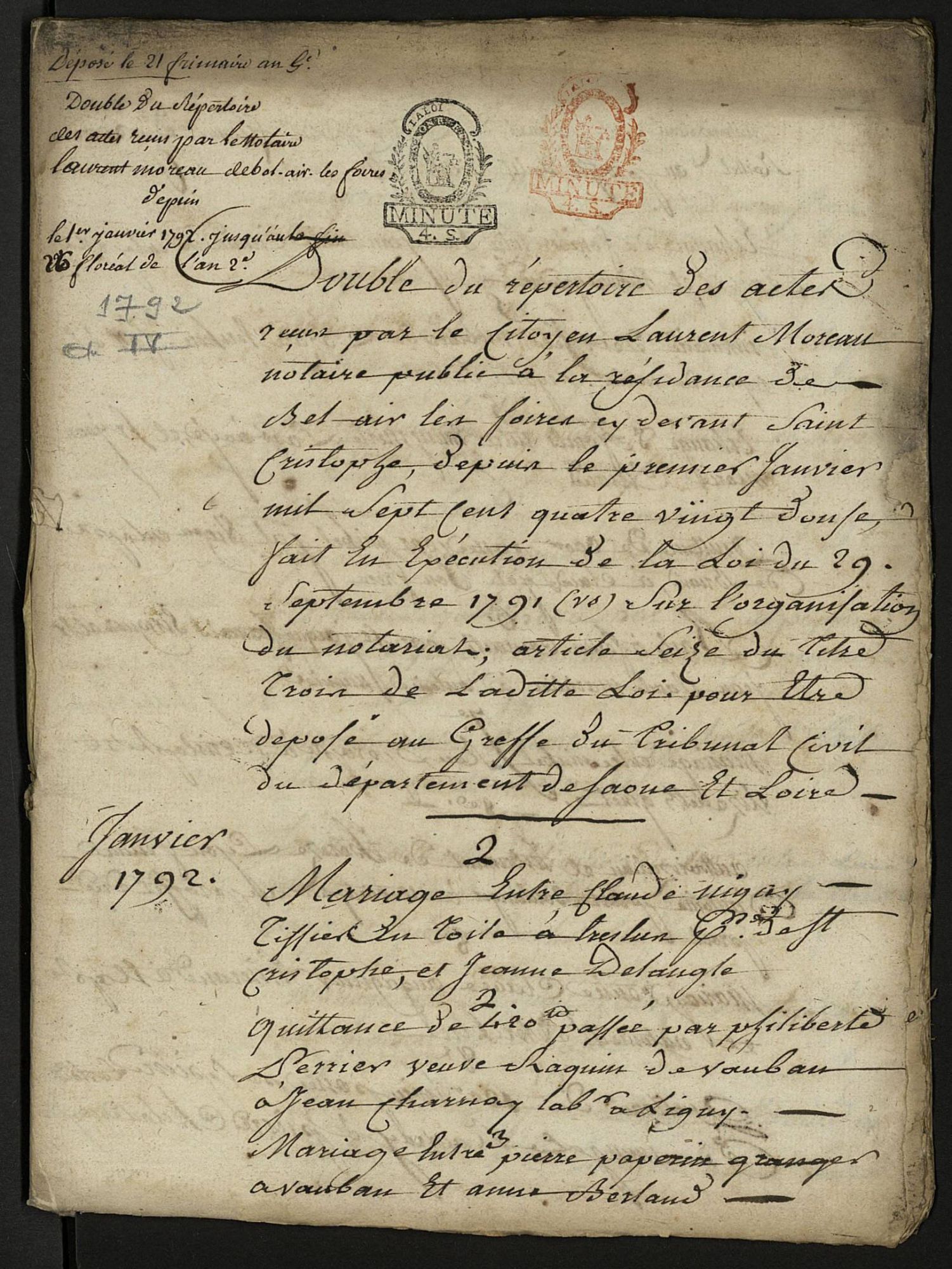Tableau des répertoires et minutes