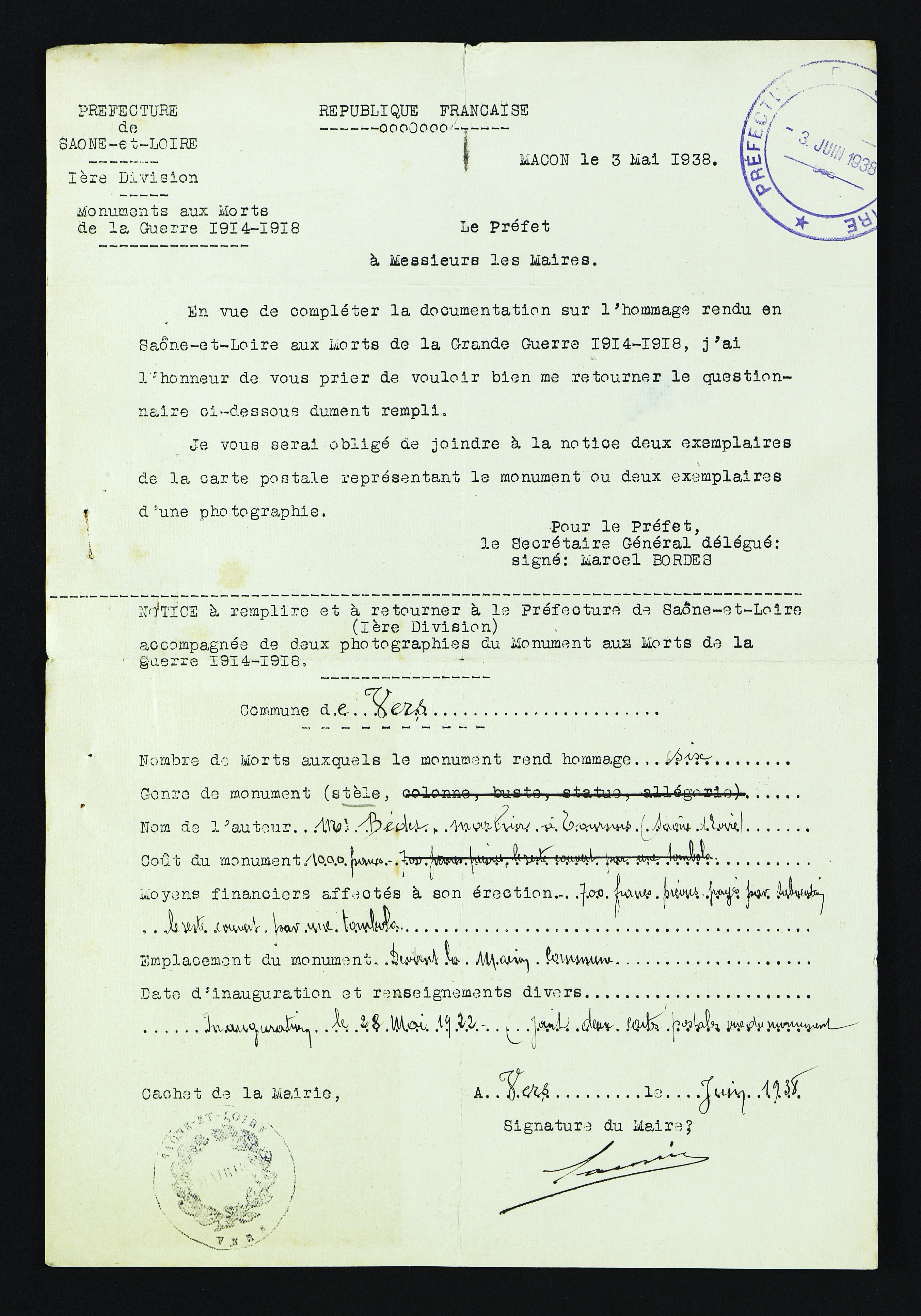... "compléter la documentation sur l'hommage rendu en Saône-et-Loire aux Morts de la Grande Guerre 1914-1918".