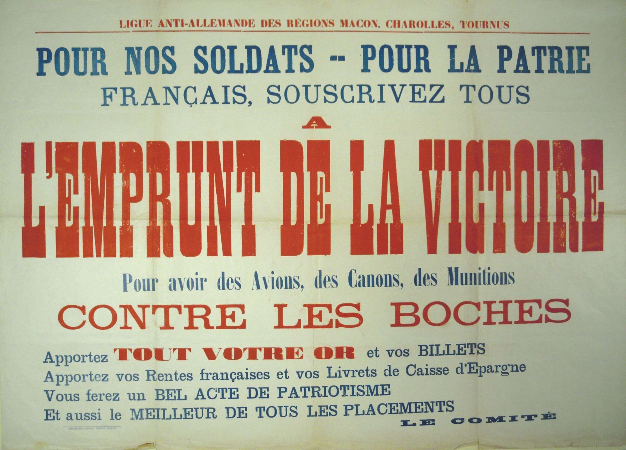 Les Archives départementales de Saône-et-Loire conservent plusieurs dizaines d'affiches exposées dans le département entre 1914 et 1920.