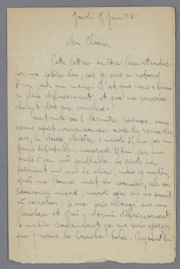 probable que je suivrai le Colonel, et d’ailleurs j’y serai aussi bien qu’ici où il n’y a pas un seul civil : toutes les communes de la zône de feu sont complètement evacuées, nous sommes partout maîtres et seigneurs