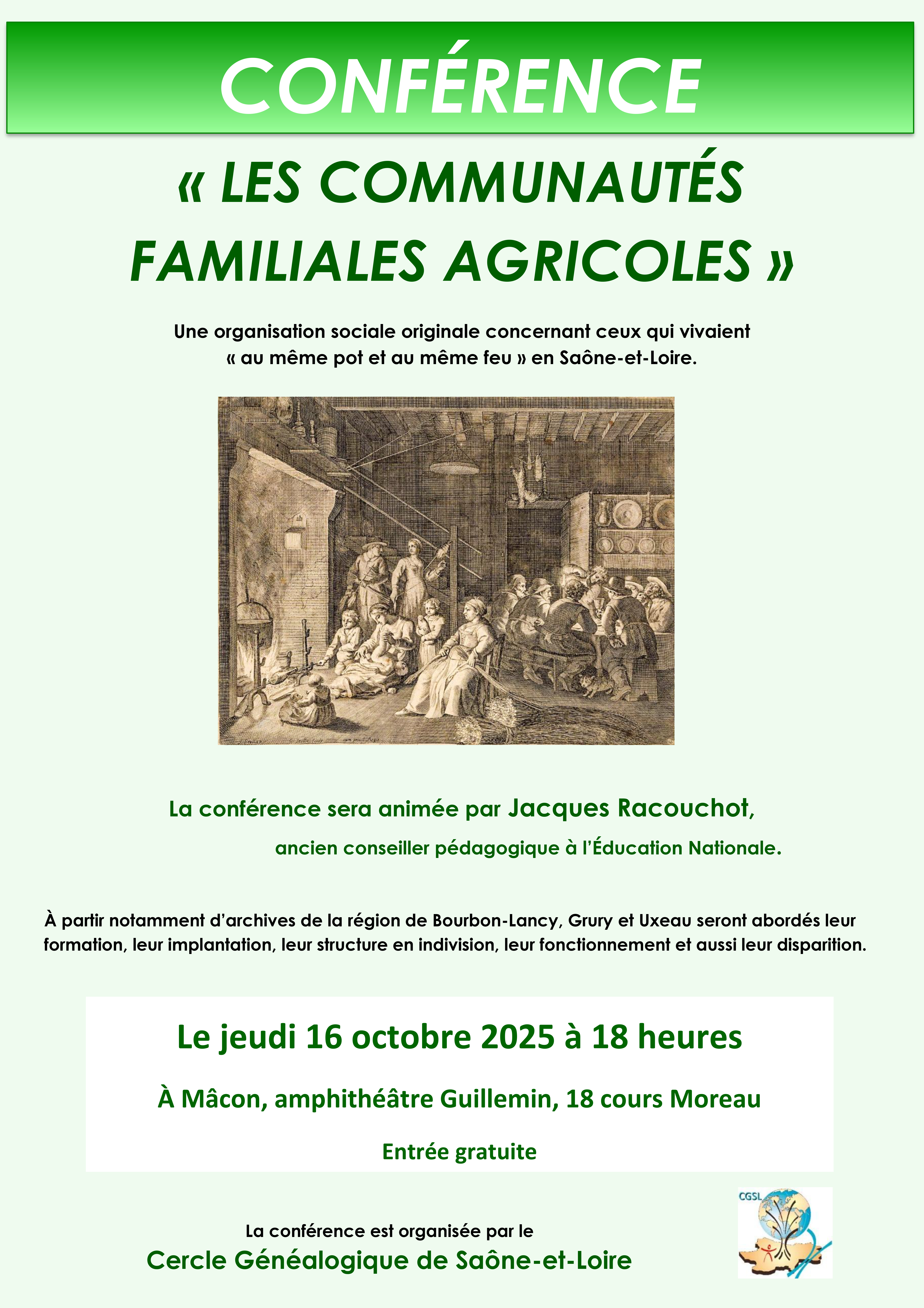 Le Cercle Généalogique de Saône-et-Loire organise une conférence sur :