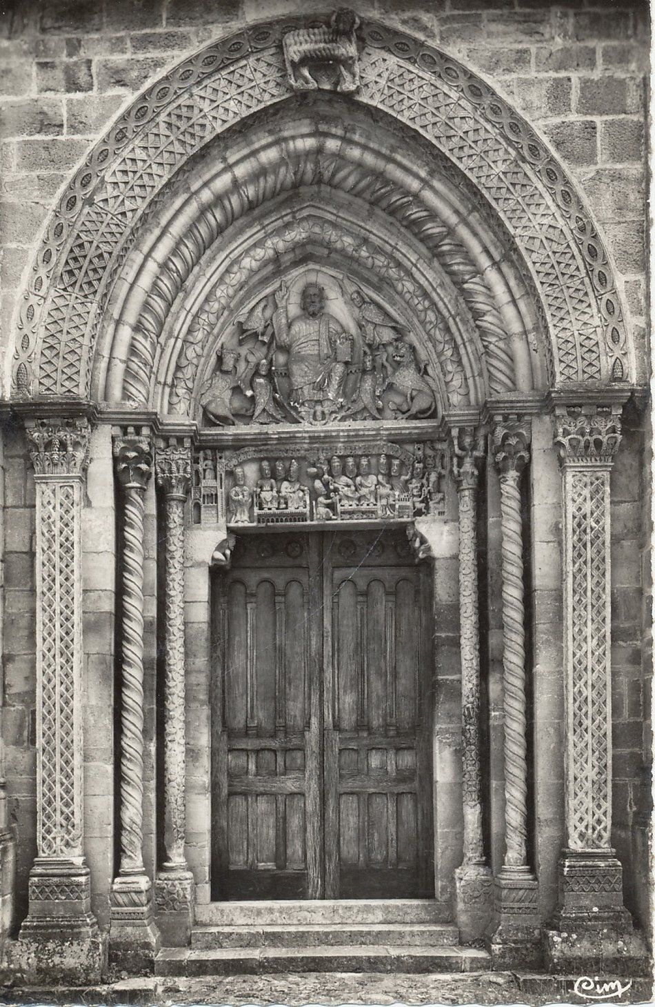 Semur-en-Brionnais, portail de l'église, tympan "légende de Saint-Hilaire" : comparaison entre une carte posale et le dessin d'Emile Sagot (faire glisser le ligne verticale), et en-dessous, images pleine page.