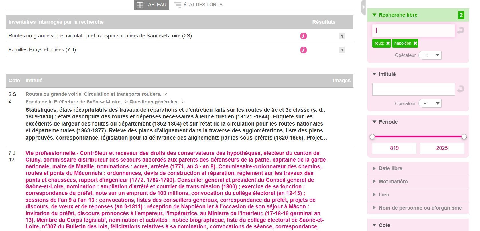 L'interrogation Napoléon donne 84 réponses, Napoléon et route : 2 réponses.