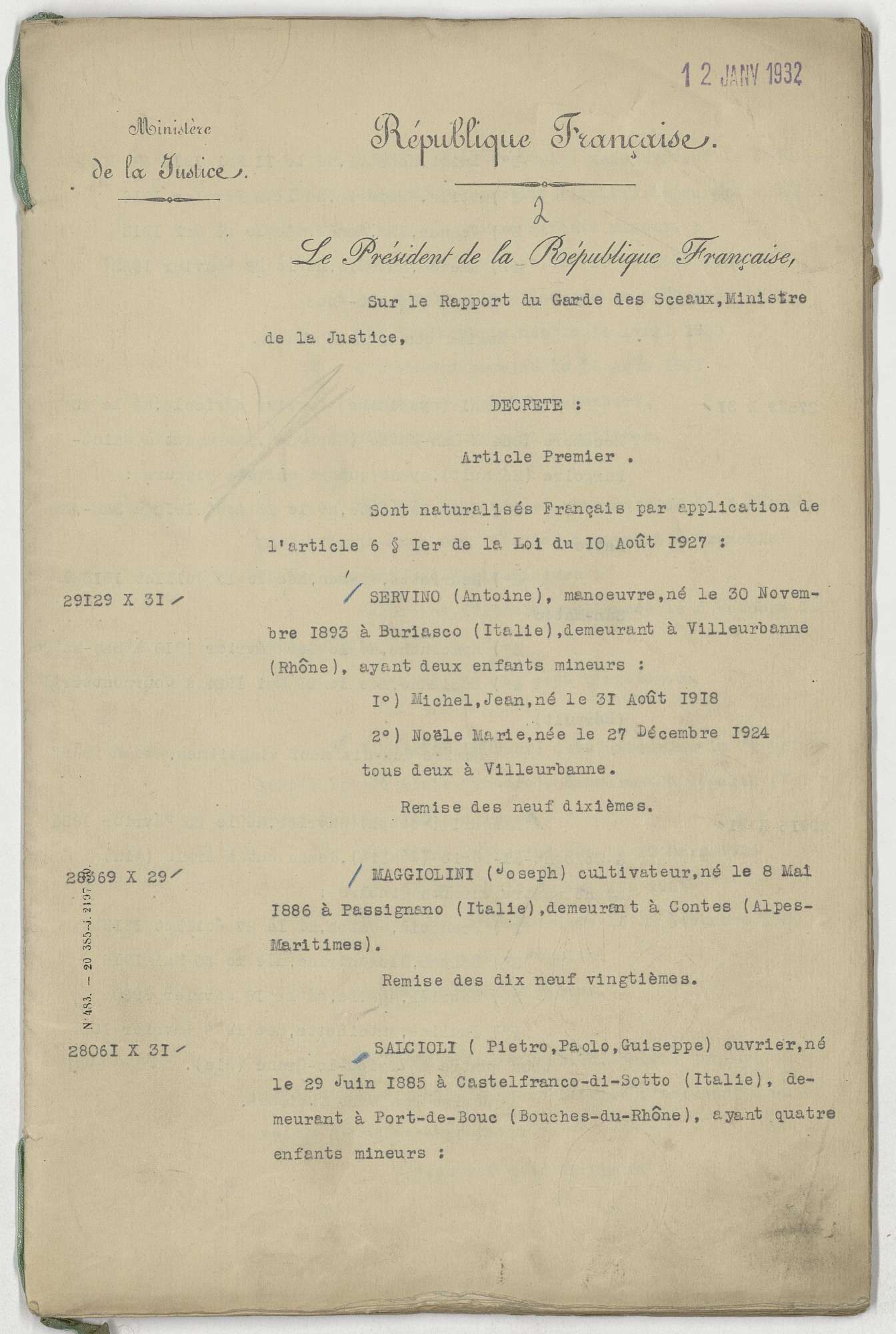 Cette publication s’inscrit dans la continuité des mises en ligne de bases et fichiers nominatifs sur les naturalisations (1789-1813, 1814-1858, 1848-1883), indexés ou en cours d’indexation, opérées par les Archives nationales depuis plusieurs années. Elle vient en outre compléter la mise en ligne des décrets de naturalisation déjà réalisée dans le cadre du projet d’indexation collaborative Natnum portant sur les années 1883-1930. Désormais l’ensemble des décrets de naturalisation de la période 1883 à 1948 peuvent être consultés en ligne et constituent ainsi une clé d’accès privilégiée pour les lecteurs qui peuvent ainsi trouver (dès lors qu’ils connaissent la date du décret) le numéro d’un dossier de naturalisation sans passer par une demande de recherche.