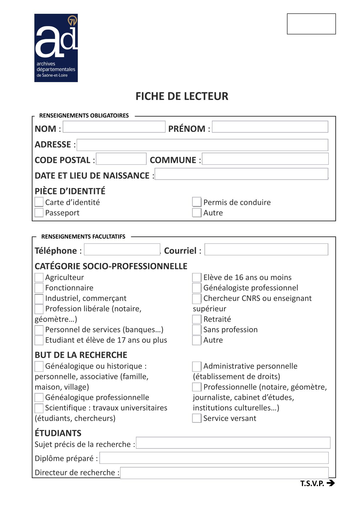 Vous pouvez vous préinscrire en complétant et en retournant le formulaire ci-dessous à l'adresse accueil-archives@saoneetloire71.fr .
