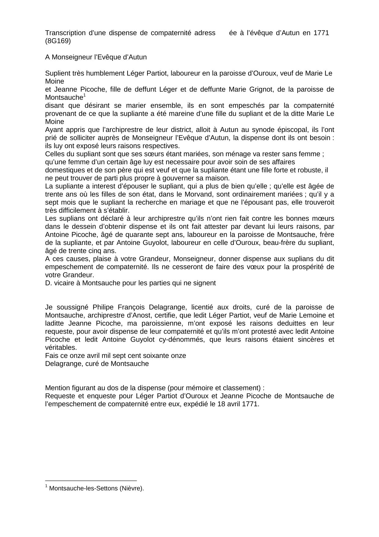 Les demandes de dispense et les enquêtes instruites par les évêchés, avant 1789, sont cotées, dans les services d’archives départementales, en série G (8 G en Saône-et-Loire).