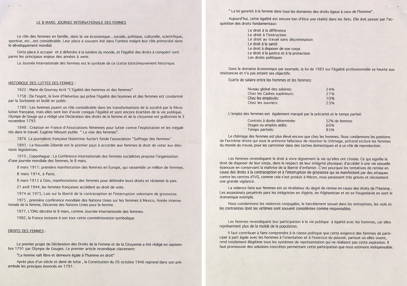 Cet atelier propose l'analyse de documents issus des Archives départementales de Saône-et-Loire qui illustrent le combat féministe avec ses avancées mais aussi ses stagnations.