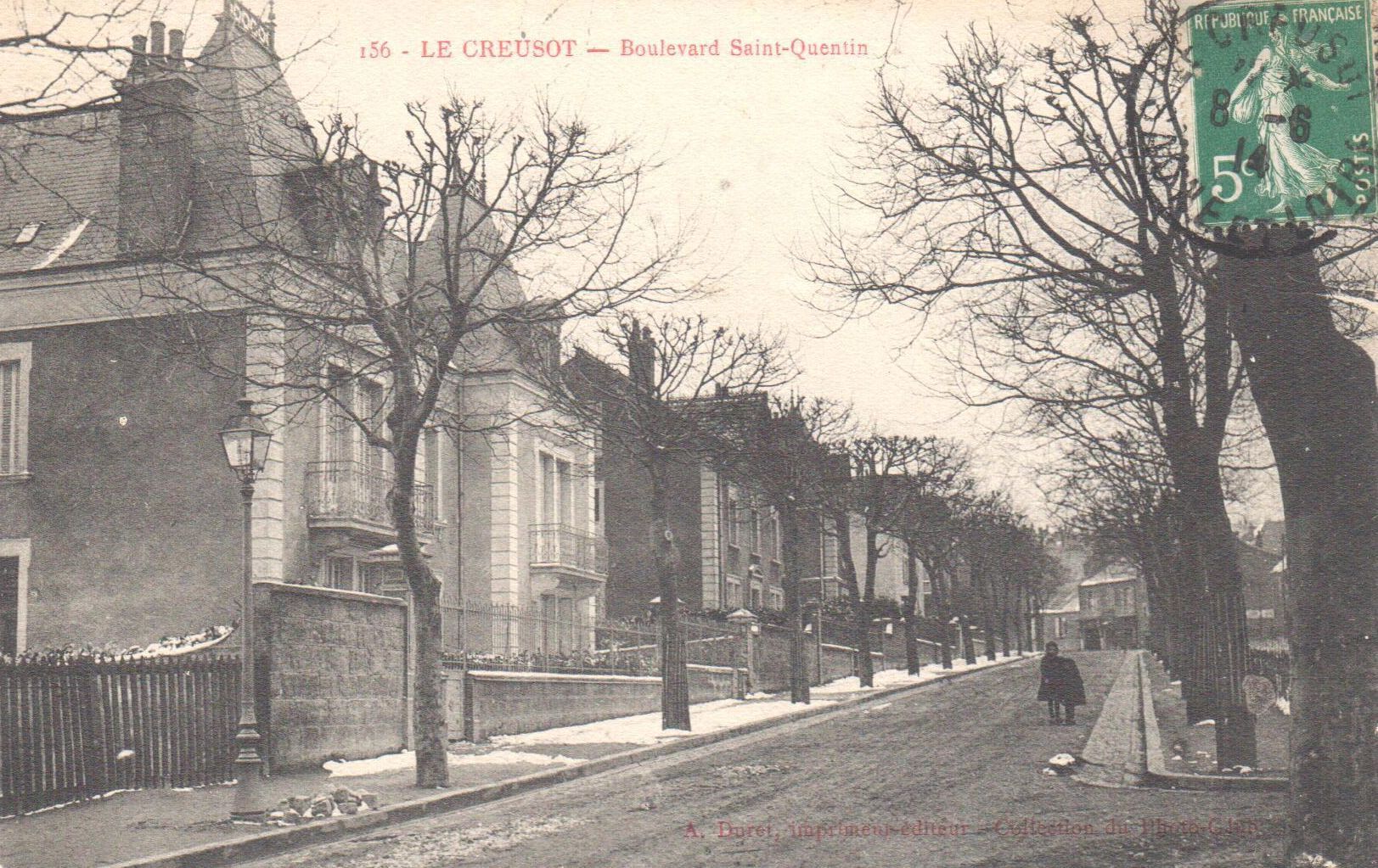 « Entre 1898 et 1912, les Etablissements Schneider érigent quatre pavillons pour le logement des ingénieurs. Jusqu’alors logés dans des bâtiments disséminés dans la ville, ils sont ici regroupés le long du boulevard Saint-Quentin. A quelques dizaines de mètres subsistent à cette époque les plus anciennes casernes du Creusot, dites des "Alouettes", datant de la fin du XVIIIe siècle. Tout tend à distinguer ces pavillons de leur environnement : bâtiments non plus alignés sur la rue mais en retrait derrière des murs de clôtures dotés de grilles, parcs ou grands jardins, remises, toits d’ardoise… On est en présence d’une architecture de villégiature, sobre, mais où s’affirme le statut particulier des occupants. […]